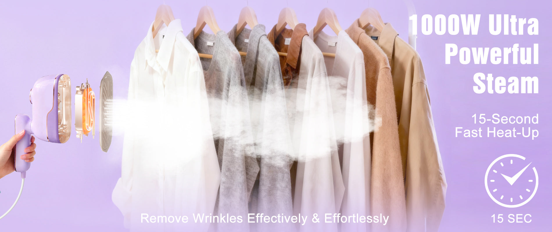 2. Fast & Powerful: Heats in 15s with a steady 0.7 oz/min steam output.