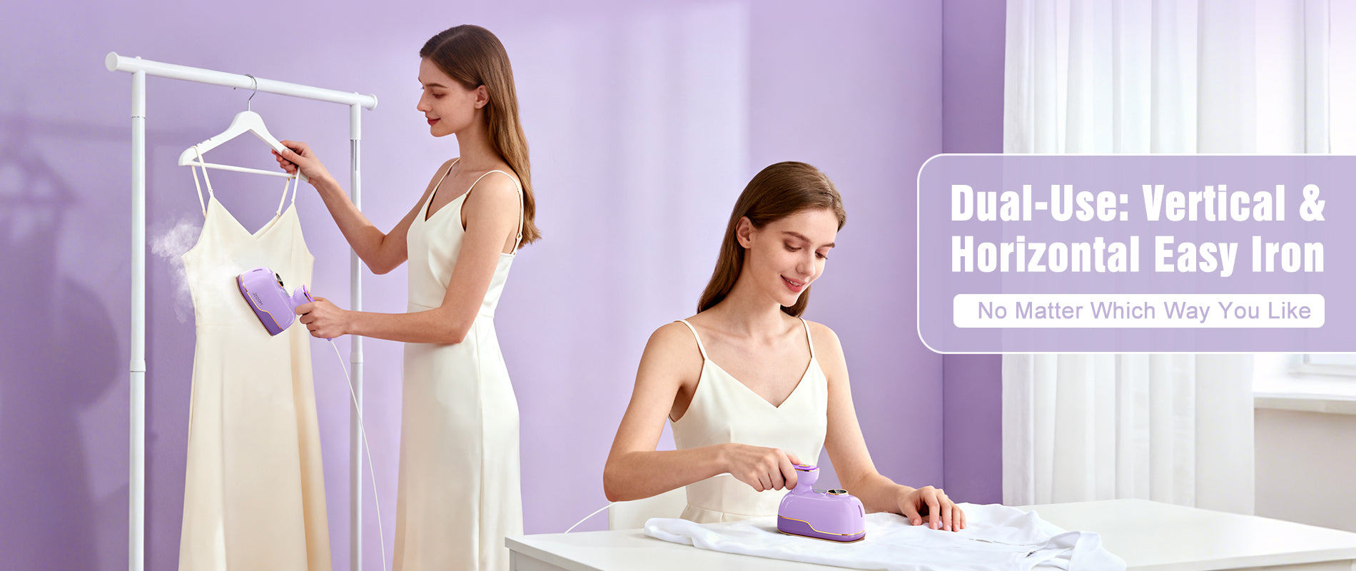 The 150ml detachable tank provides about 8–10 minutes of continuous steam — enough for 2–3 garments.